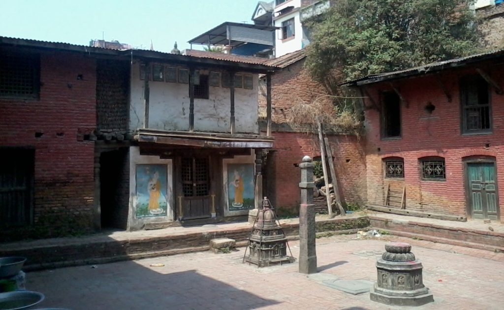 Guita bahi refers to three Bahils namely Pratham Shree Mahabihar, Vasucchasheela Mahabihar and Gustal Mahabihar located at the eastern most edge of the old Patan. This place rich with a number of attributes, cultural practices and rituals. This includes daily puja ritual called ‘dekhya cayeke’, recitation of hyms called ‘tutah’ in every full moon, half-moon and first day of the month of Nepalese solar calander. All three bahils are run by their own Sangha (a monastic institution) headed by five senior monks. These five senior monks have rights to order a shakya boy as monk for four days and grant the membership of sangha.