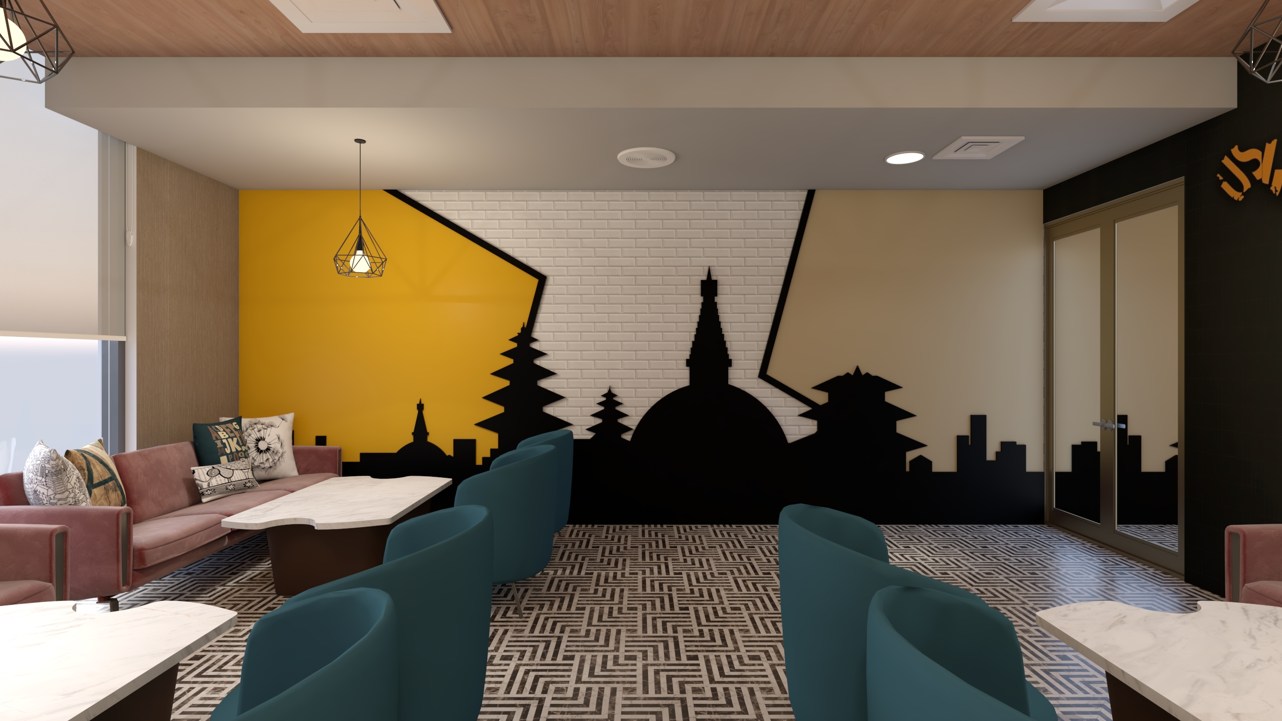 My role involved the design and layout of the furnitures, wall elevations, material choice and lighting and prepare the 3D visualizations of different scenes. Warm colors were chosen for the design.