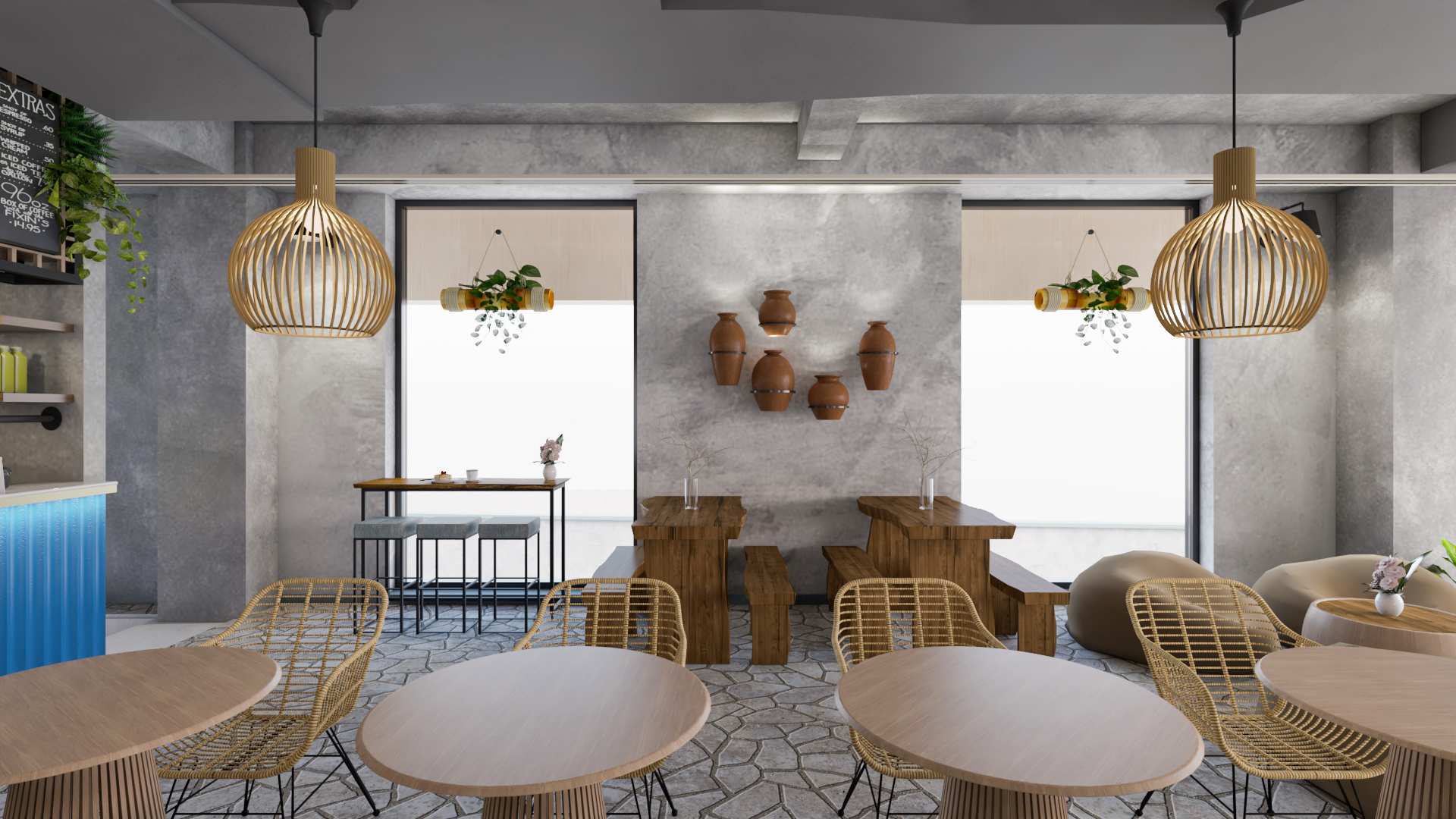 The primary theme of the cafe was “Rustic design” which represents a natural, rough, aged, and casual design style. Imperfections were preferred to perfections for the design of this cafe. However, that was limited to the aesthetics and not the functional layout and comfort.